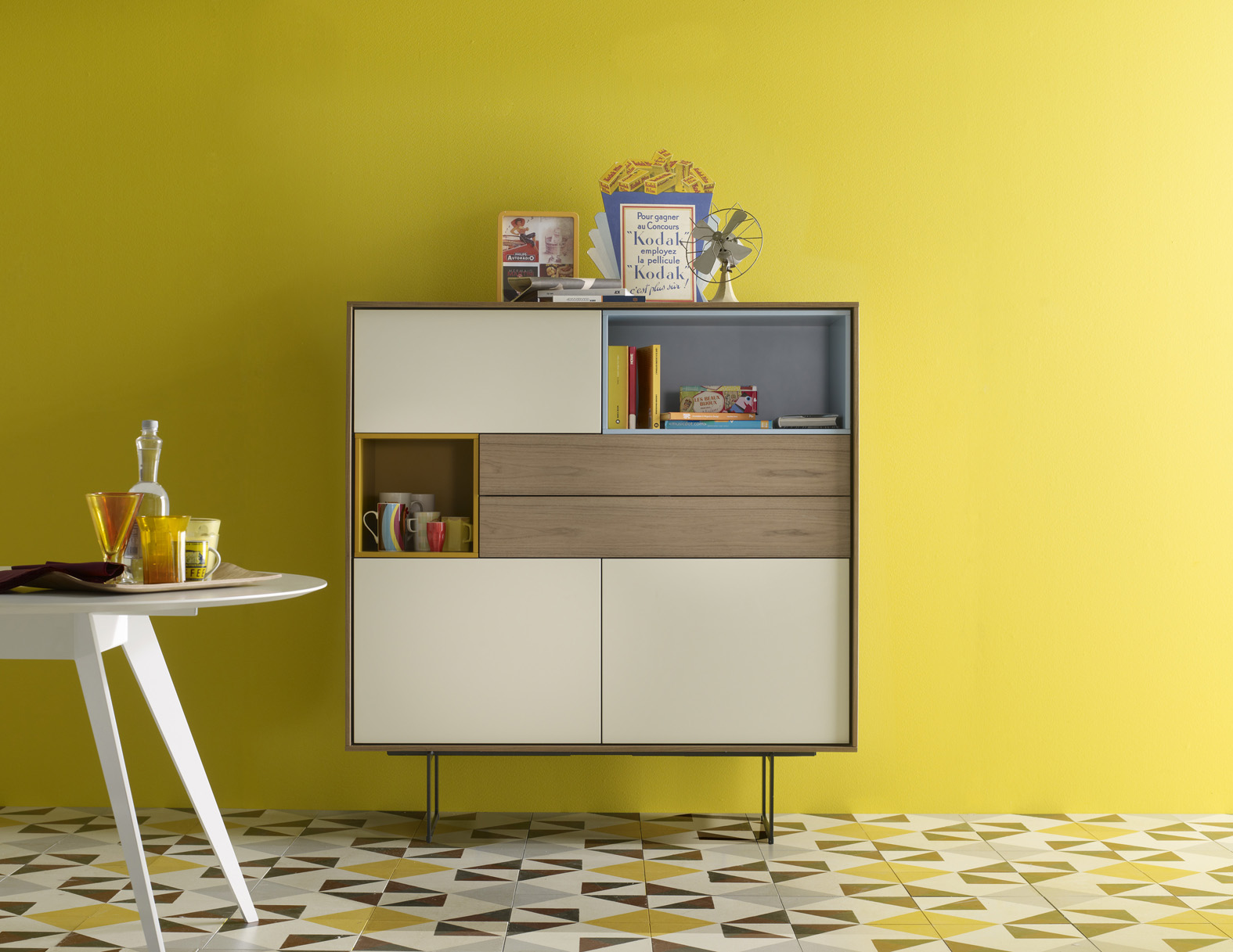 Nous avons eu un coup de coeur pour la nouvelle collection AURA dessinée par Angel Marti et Enrique Delamo, un système de rangement que l’on peut composer à volonté tant dans le choix des finitions et couleurs que la forme et les dimensions du meuble. Une Ligne un brin rétro dans un esprit 50!