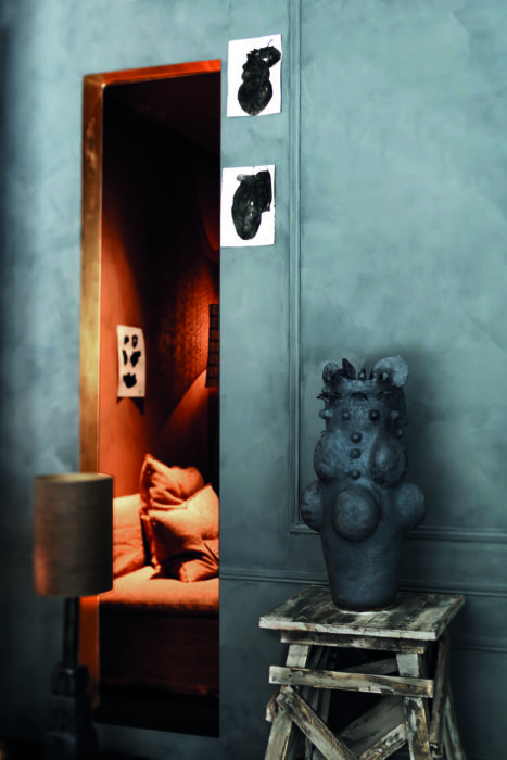 Les murs se teinteront des délicates couleurs des chaux créées par Maison de Vacances pour Ressources. Sensible à l’alchimie de l’émotion de la matière, Claude Car