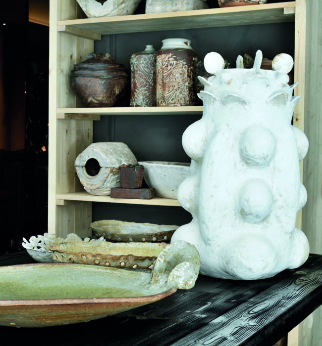 A l’occasion de sa 10ème programmation, Inside Gallery propose un décor élégant et naturel, mettant en scène les céramiques de Pierre Casenove, un artiste cher à Claude Cartier. De l’authenticité des œuvres de ce dernier, ainsi que de l’intemporalité des matériaux choisis (innovation textile de BISSON BRUNEEL, mobilier de MAISON DE VACANCES), est née une scénographie à la fois brute et esthétique.