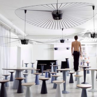 Elle survole et ondule majestueusement dans nos espaces! Cette suspension péotique en inspire plus d’un, un jour capeline, le lendemain libellule, est la création de Constance Guisset pour la Petite Friture. Avec ses 2 mètres de diamètre, cette lampe-cabane suggère un espace d’intimité. Une fois éclairée, elle projette sur les murs environnants et le plafond […]