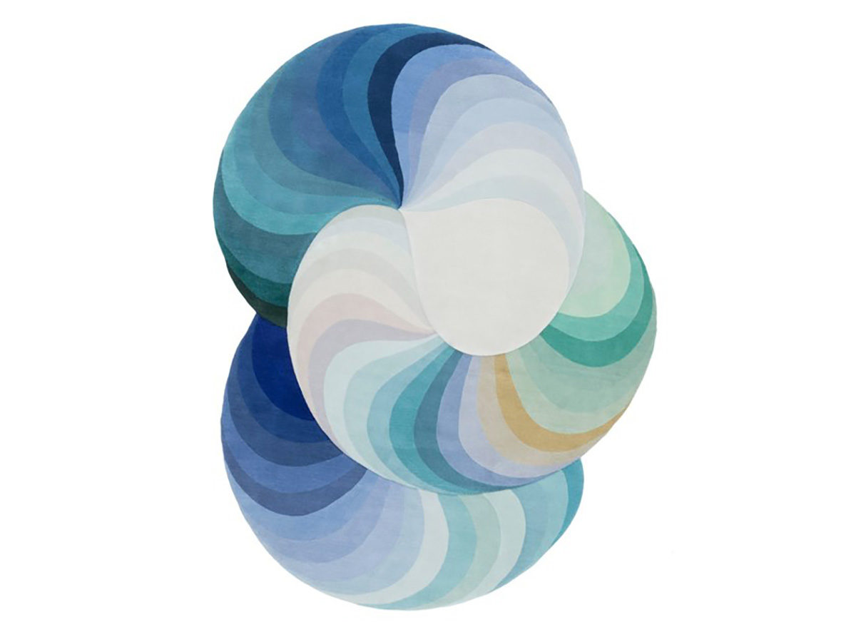 Du côté de Patricia Urquiola, designer en vogue, c’est sans surprise qu’une collaboration s’instaure de nouveau pour cette collection. La créatrice a déjà signé de très nombreuses pièces pour les plus grands noms du design : Moroso, Flos, Mutina, Agape, ou bien encore Glas. Connue pour ses lignes originales, Urquiola propose des concepts, des innovations. Habituée de la maison, créatrice de plusieurs icônes de la marque, son travail sonne comme une continuité logique à ses précédentes pièces. Ainsi, en 2017 nous avions déjà découvert avec admiration les tapis Rotazioni et Vizioni, véritables dessins graphiques et colorés. Cette année, le Slinkie reprend les mêmes ingrédients mais renouvelle complètement le résultat.
