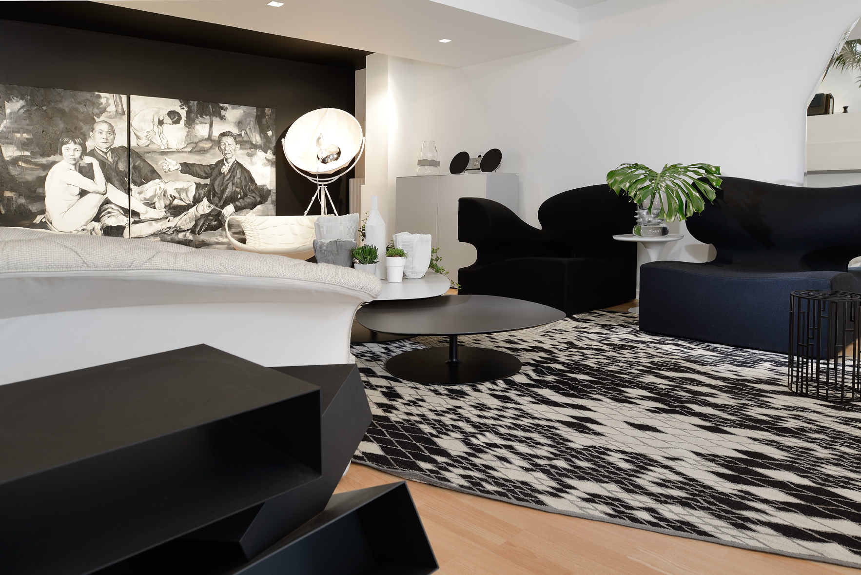 Après leur premier opus très coloré, les frères Bouroullec ont recoloré le tapis dans des tons Noirs / Beige.