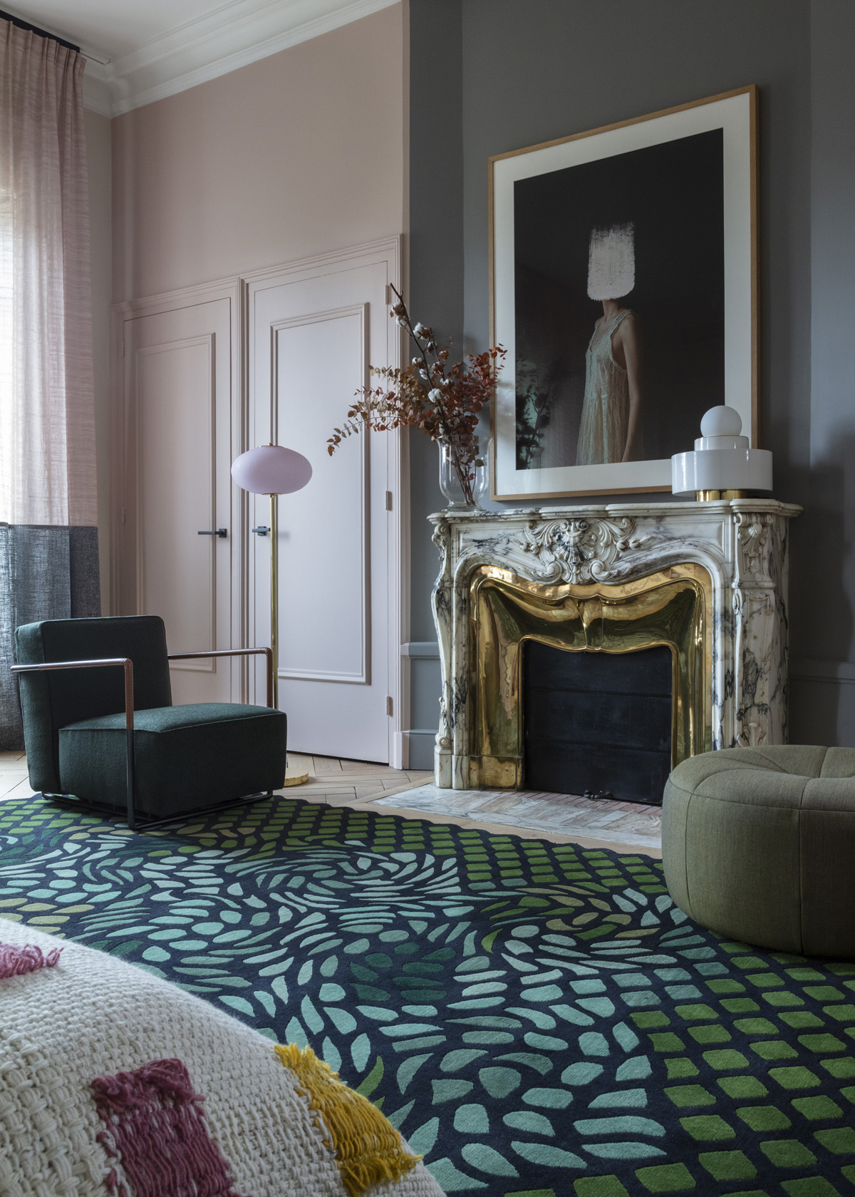 Des volumes magistraux, des atouts ornementaux exceptionnels délivrent dès le départ l’écriture future d’un scénario Arty. Ces codes décoratifs forts tels qu’un sol en terrazzo très graphique, des cheminées époustouflantes seront des atouts incroyables.